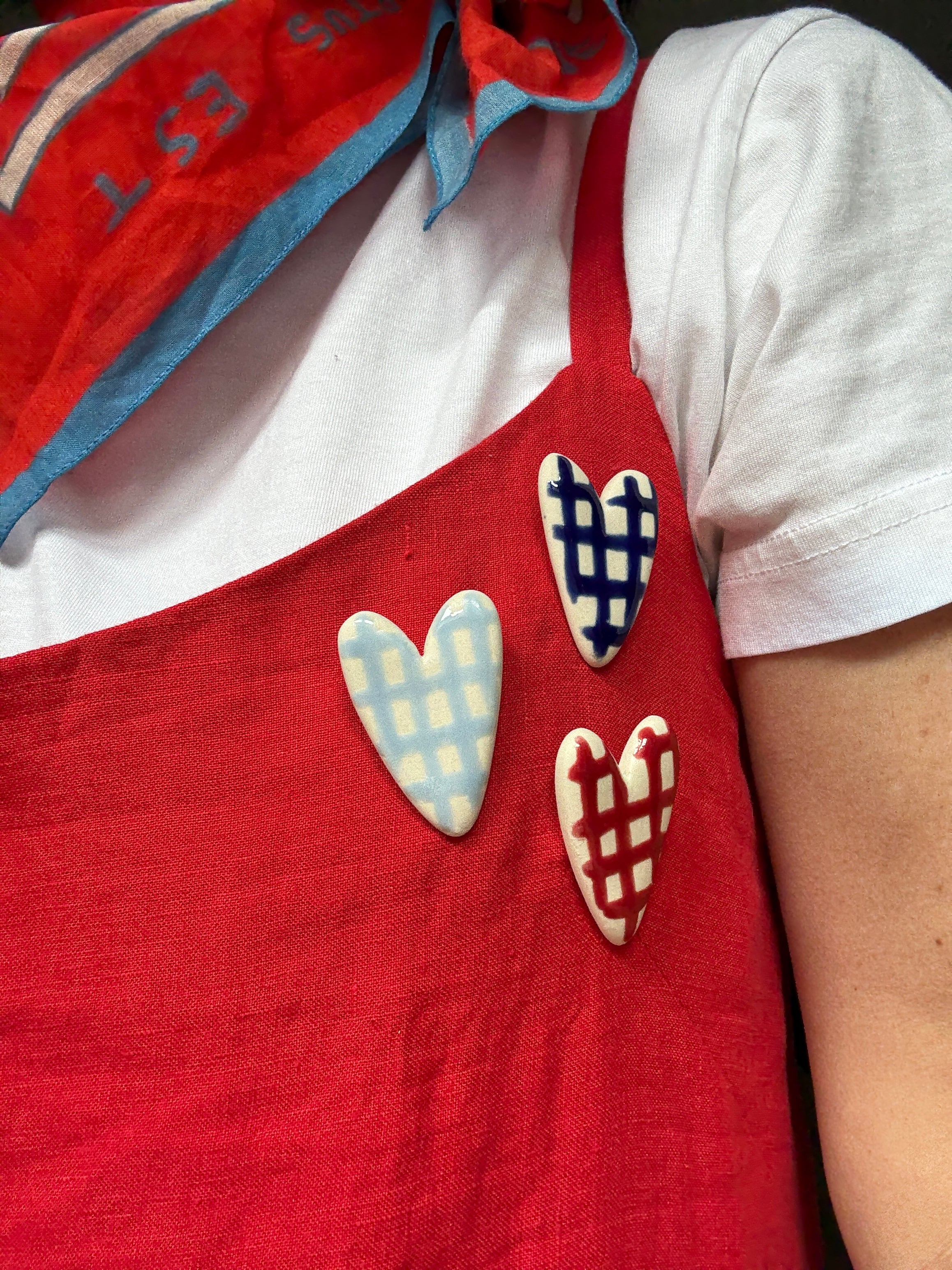 The heart brooches are made in clay and they were designed and created to match the Letters from Paris collection.