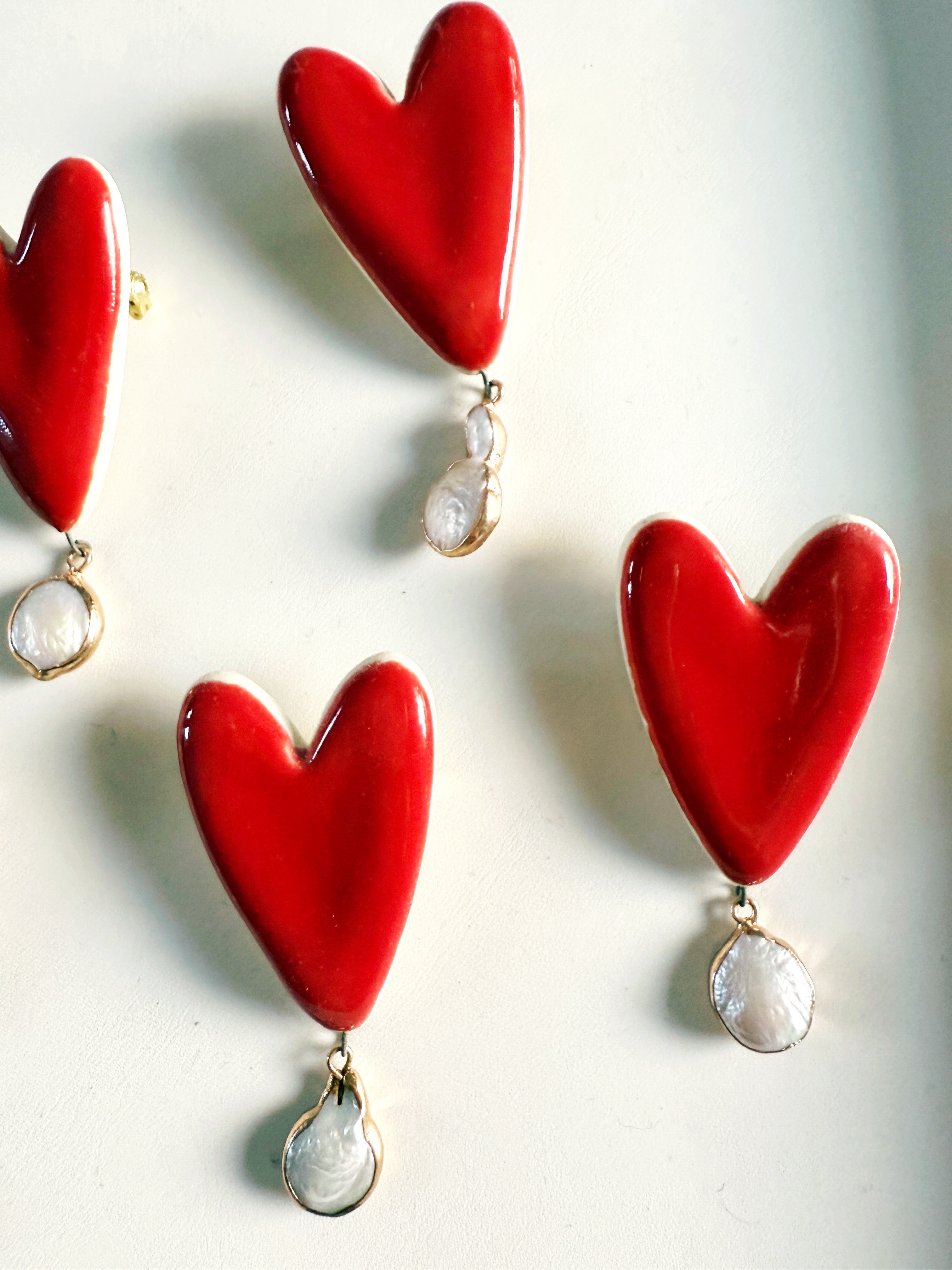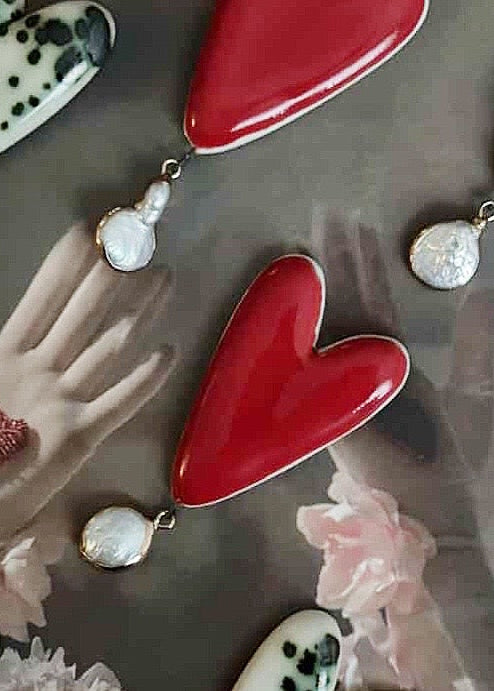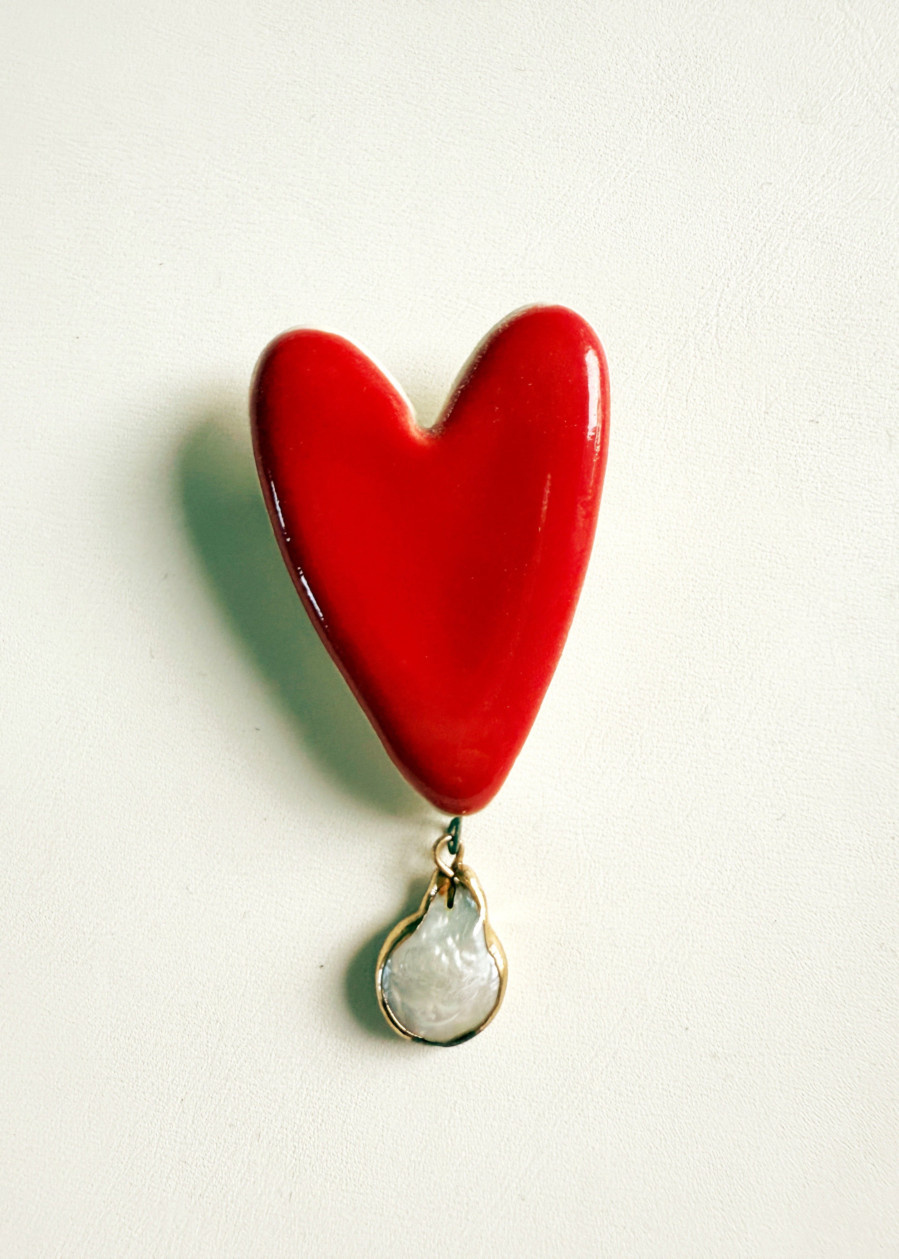 The heart brooches are made in clay and they were designed and created to match the Letters from Paris collection.