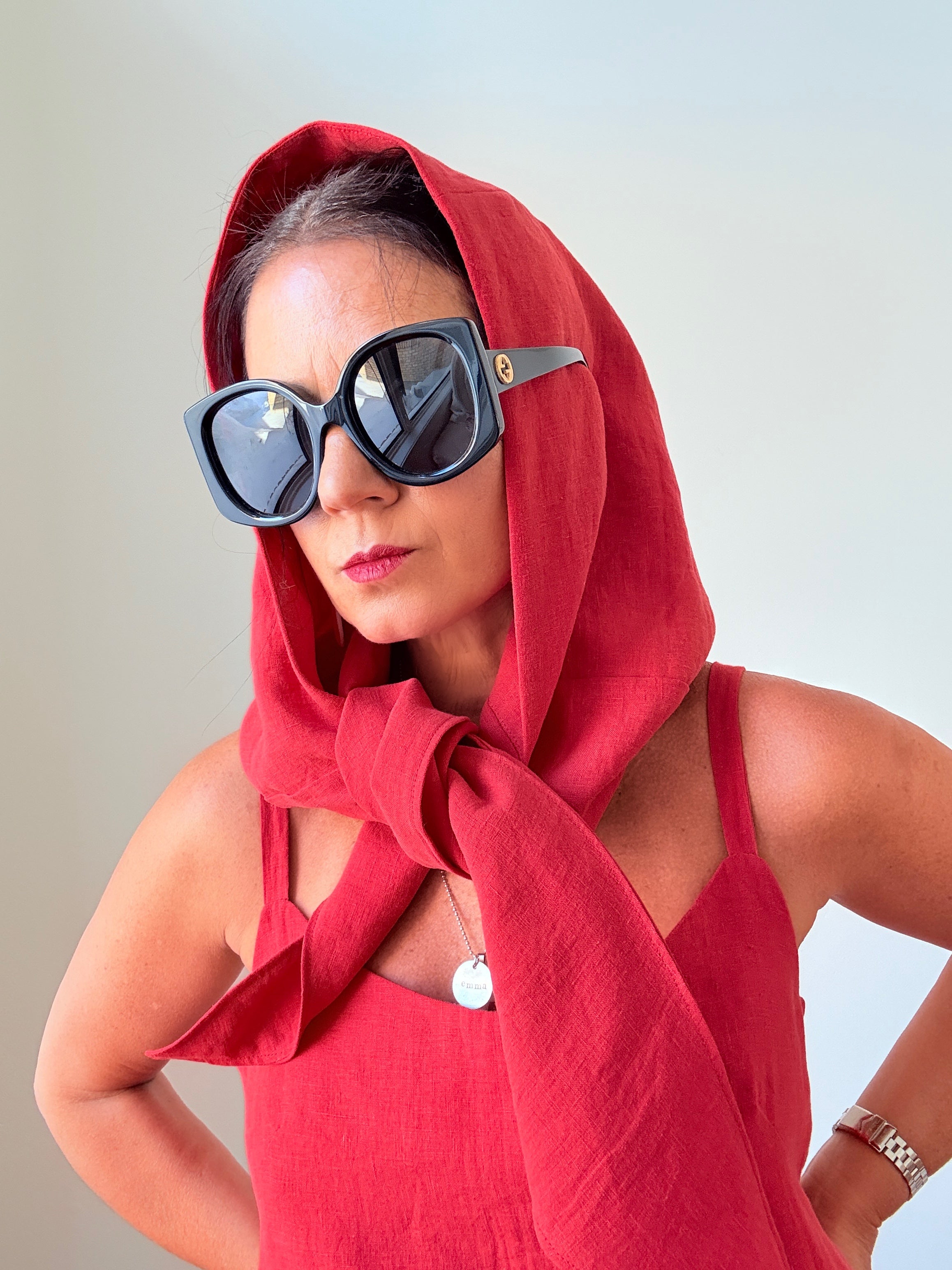Not a scarf but more like a hood! Mira is a warm layer over a coat or a pop of colour over a dress. You can customize it to make it reversible in two different colours if you wish.